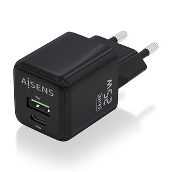 Chargeur Aisens Gan 25W - 1xUSB-C PD3.0 QC4.0 - 1xUSB-A QC3.0 - Couleur Noir