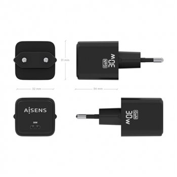 Chargeur Aisens GaN USB-C 30W - Haute efficacité énergétique - Design élégant et moderne - Technologie IA pour une charge rapide